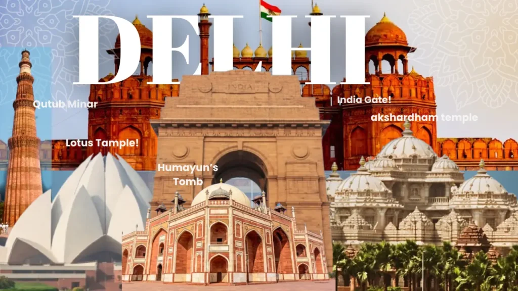 The Lotus Temple is a Baha’i House of Worship in New Delhi, India, known for its distinctive lotus-flower-inspired design. India Gate is a war memorial in Delhi, commemorating Indian soldiers. Lal Qila (Red Fort) is a historic Mughal fort in Old Delhi, serving as the main residence of Mughal emperors. Qutub Minar is a UNESCO World Heritage Site, a towering minaret in Delhi, the tallest brick minaret in the world.